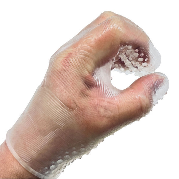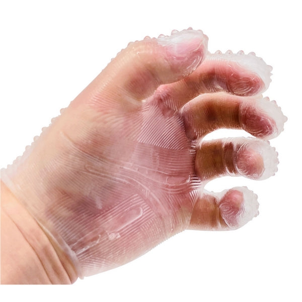 Made of transparent silicone, this snug, see-through glove is covered in two different patterns (nubs or grooves) so can be reversed and used either way to vary the sensations you feel.