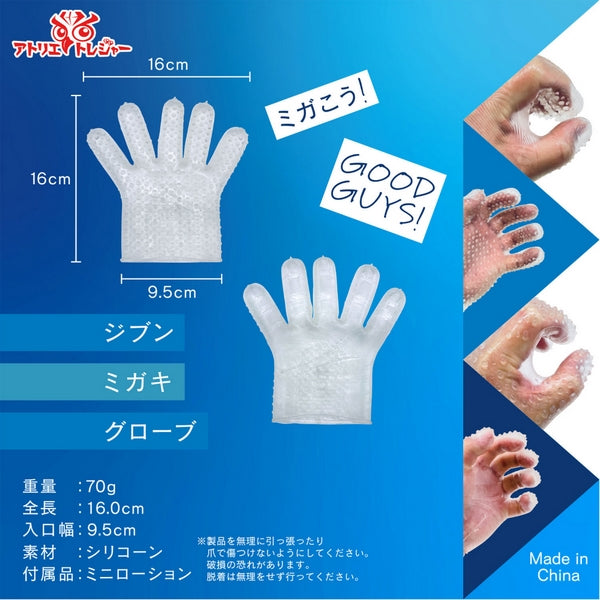 One size fits all, the glove comes with a mini pack of lubricant for enhancing sensations. It is suitable for both lefties and righties, and is fully washable and reusable.