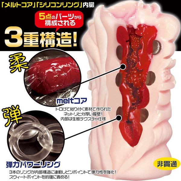 There are three different layers of body in this Yokujo Sexual Design Gimmick Onahole, making for a five-point pleasure passage, complete with THREE special flexible "power rings" deep inside that add bounce to your thrusts.