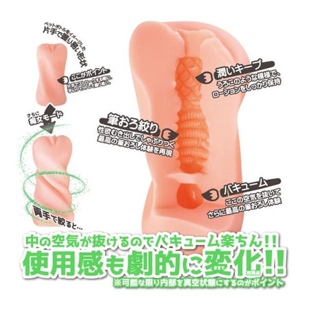 The Fudeoroshi Brush Stroke Vacuum Onahole takes your cock's breath away with its strong vacuum sensation.